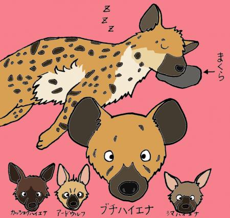 さて、そんなブチハイエナの兄弟は、今年で11歳と8歳になりました。ブチハイエナの寿命は約30年、まだまだこれからなお年頃です。気になるのはお嫁さん問題ですが、当園では繁殖が成功したとしても飼育できるスペースがないことや、飼育している動物園が少ないため子どもの引き取り手もなかなか現れないことを考えると、難しい問題です。無計画に繁殖させるわけにはいかないのです。しかし今後ブチハイエナの人気がもっと高まり、たくさんの動物園で飼育するようになれば、ツキとセレンがお嫁さんをもらう日も来るかもしれない・・・と淡い期待を抱きながら、飼育担当者は今日もブチハイエナの魅力をみなさまに伝えるべく奮闘しています。猛獣館に入る前に一度足をとめて、意外と愛らしい顔をしたブチハイエナをゆっくり観察してみてください。
