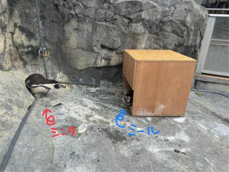 ミールの様子を見ても、外より巣箱の中の方がペンギンにとっては居心地のよい空間のはずです。