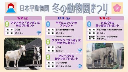 冬の動物園まつりは令和8年1月12日(月・祝)まで開催中です。