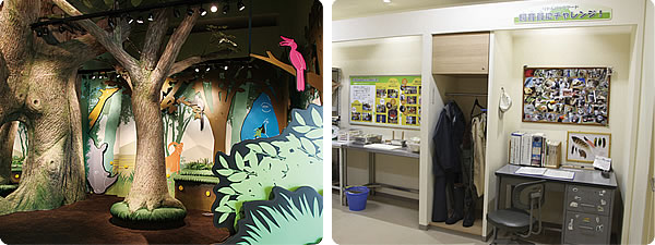 いきものや飼育員になりきって楽しもう ふしぎな森の城の一階にある「あそびが森」には、いきものたちのヒミツや自然のふしぎが隠されている。森の中を、歩き、もぐり、のぞき、這い、あたかもいきもののように「あそびが森」の中をめぐる。さらに、2階の「リトルバックヤード」にある飼育員の仕事場をのぞき、そのヒミツやふしぎを見つけだす。いきものや飼育員になりきって楽しみながら、いきもののふしぎに出会える、「ふしぎな森の城」は、そんなユニークなあそび場。