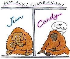 来園後、キャンディの生理が終わり発情が来る少し前に、オスのジュンとお見合いをしようという当初の予定通り、この状態の中進めることにしました。これも少しはキャンディの気を散らす一因となってくれたらと思っています。そのためジュンは終日展示せず、キャンディの隣りの部屋で過ごすことになりました。お客様にはオランウータンをしばらく御覧いただくことができませんがご了承ください。ジュンにもつらい思いをさせますが、なんとかキャンディのために頑張ってほしいと思います。キャンディ、皆がお前の元気な姿を青空の下で見られ