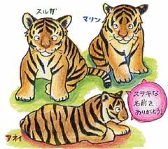 皆さんお待たせしました。いよいよ3匹の子トラちゃんが待望のデビューです。公開は新年最初の開園日、1月2日から始まりました。2005年のスタートからこのような3匹の子トラちゃんのやんちゃで遊び盛りな、本当にかわいらしいしぐさをたくさんのお客様に見てもらうことができ、担当の私としてはまさに「飼育冥利(みょうり)に尽きる」という感じであります。