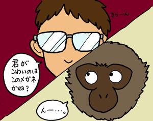 ホープくんをクモザルの島から中型サル舎へ移動する際、麻酔をかけたのですが、吹き矢を打ったU獣医もメガネをかけていたので、メガネをかけた係を見ると、また何かされるかもと思ってしまうのではないかということでした。