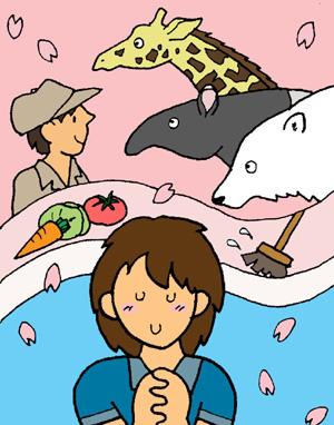 中学生を前に、私は今でもよく、動物園で学ばせていただいた3日間のことを思い出しています。冬の寒い朝、子供達と一緒に雑巾を絞りながら、「動物園のプールのお掃除は比べものにならないくらい冷たいんだろうなあ」とか、お店の野菜を手にして、「田地川さんならこれで何gか、ぴったりあてられるんだろうなあ」とか。そういったことから始まって、飼育員の皆さんの常に動物達に声をかけ、うまくできたらきちんと褒めてあげる姿や、動物達が動くまでじっと待ってあげる姿も。それから、言葉のやりとりはなくても、確かな信頼と愛情が存在するその空気に感動したことなど次々に・・・。