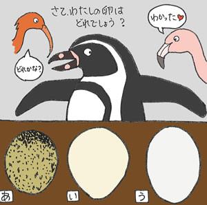 クイズでは、いろいろな大きさの卵を見ながらどれがペンギンの卵かを当ててもらったり、頭数が多いペンギンをどうやって個体の区別をしているか、どんな餌をどのくらいどのように食べるかなどについて出題しました。