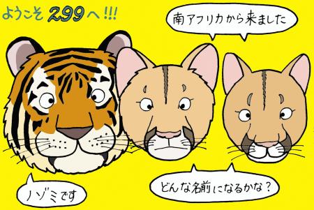 7月上旬、猛獣館299に大きな動きがありました。南アフリカ共和国から若いピューマのペアが、そして和歌山県のアドベンチャーワールドからアムールトラのメスが来園しました。ピューマのペアは新規導入で、2歳のオスと1歳のメスです。この記事を書いている時点ではまだ名前が決まっていませんが、きっと素敵な名前が付くことでしょう。アムールトラは『ノゾミ』という7歳のメスで、精悍な顔つきの美トラです。