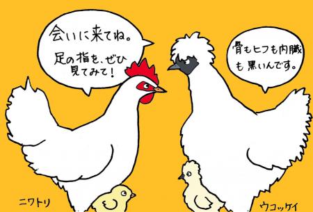 以前、お客さんからウコッケイとニワトリの違いは何ですか?と聞かれて、うまく答えられませんでした。なので、今回はそのときの名誉挽回をしたいと思います。