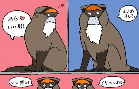 現在、日本平動物園の中型サル舎にブラッザグェノンというサルが3頭で暮らしています。3頭ともメス(母と娘2頭)で父親は5年前に死んでいます。娘が7歳と5歳といいお年頃になってきたし、母親も16歳とまだ現役(?)なので、豊橋総合動植物公園からお婿さんを1頭もらいました。「ユウキ」という名前の、とてもきれいな顔と毛づやをした6歳のイケメン(イケザル)です。豊橋から車で運んできたあと、動物病院の検疫室に数日間入ってもらって、その間に寄生虫や細菌感染がないことを確認しました。普通ならこのあと中型サル舎のブラッザグェノンの獣舎に入ってもらうのですが、先住民のメス3頭はなかなかの強者(つわもの)たちです。ホームに弱いオスが入って来ようものなら、メスがよってたかってイジメてしまうかもしれません。そこで、アウェイである動物病院へ彼女たちを全員連れていき、順番に1頭1頭ユウキとお見合いさせることにしました。