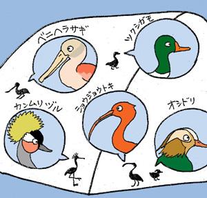 秋晴れの中実施されました。担当の花崎飼育員の身振り手振りを混じえたやさしく話しかけるような解説に、参加者も思わず引き込まれ最後まで飽きずに聞いてくれました。始めに、フライングケージの住人たちの種類や性格、お互いの関係などの話がありました。次に、実際に給餌している餌を見せながら鳥の種類によって食べ物が違うことを解説しました。種類によっては専用のペレット(固形飼料)が開発されそれを与えていることを紹介すると、参加者は感心していました。解説の間にはクイズをはさみ、正解者にはフライングケージで暮らす鳥の羽根がプレゼントされました。ガイド開始時には30数名だった参加者も、話につられ終了時には50名を越える参加者を数え、プレゼントの羽根が足りない程盛況でした。