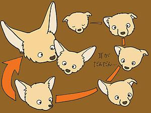キツネの仲間では最小で、体重1.5kgぐらいにしかなりません。耳がとても大きく放熱の役目をするといわれています。足の裏にも毛が密生していて、熱い砂から守られています。