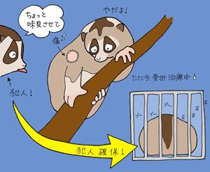 ザブトンが入院してきたことにより、病院飼育員のスローロリスへの興味はものすごく膨らみました。東京で開かれたスローロリスの勉強会に休みの日に行ってきたほどです。どうやらその勉強会の中でも、体重1kg以上あり、肩パットをしたブーブー呼吸するスローロリスは紹介されなかったそうです。大人になって来園したときには既にこの体格だったため、ザブトンの不思議は深まるばかりです。