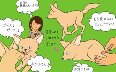 ピースはフェネック夫婦の間に何頭目かに生まれた子供です。残念ながらこれまでの子供は成長できず生まれて間もなく死んでしまっていたため、無事成長した初の子供です。「元気に走れるようにさせてあげたい。」みんなの共通の思いです。骨が弱いピースのために餌にカルシウムを加えたり、タオルを何枚もしいたフカフカの床や特製の扉や床板を作ったり、飼育員達も毎日工夫を重ねピースのお世話に臨みました。