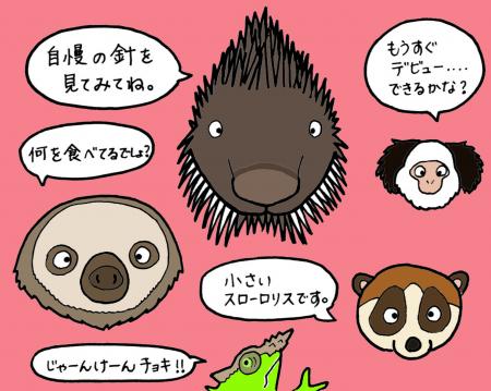 夜行性動物館に、福岡市動物園からヤマアラシ♂が仲間入りしました。また、日本モンキーセンターからレッサースローロリス♀とナマケモノ♀5歳がお嫁入りし、小型サル舎にもシロガオマーモセット♀6歳がお嫁入りしました。ヤマアラシは前にいたおじいちゃんオスに比べてとても若いので、肌はピチピチ目はキラキラと若々しい顔をしています。もちろん中身も若いようで、おじいちゃんヤマアラシが新しい飼育員でも鷹揚と広い心で受け入れてくれたのに対し、新人ヤマアラシは飼育員への警戒をあらわにし、自慢の針をこちらに向けてくるそうです。日本平動物園にいるアフリカタテガミヤマアラシは、ヤマアラシの中でも体が大きく、針も太い種類ですので、実物を見ていただくと、飼育員の苦労を想像していただけるかと思います。ナマケモノは、「今いるオスに比べて2倍はあるんじゃない!?」と言われるほど、体格のいいメスです。展示場で2頭を比べてもらうとすぐにわかると思います。でも、この子の場合は注目してほしいのは顔です。とってもかわいいのです!動物も人と同じで個体によって顔のつくりが少しずつ違っています。新しく来たナマケモノはこんなにかわいいナマケモノがいるなんて…!と思ってしまうほど、かわいい顔をしています。いつも高いところにいて、顔を見せてくれる機会はなかなかありませんので、午前のお食事の時間を狙って、是非ともナマケモノの顔を見に来てください。さて、同じくお嫁入りしたシロガオマーモセットですが、こちらはしばらくお見合いを行いますので、お客様の前に現れるのがいつになるのかはまだ分かりません。シロガオマーモセットは体長約20センチ、体重約250グラムの小さな体ですが、移動のための車に乗ってすぐにエサを食べ始めた豪胆だったそうなので、意外と早く皆様の前に顔を出すかもしれません。展示場にお知らせを出しますので、ぜひチェックしてくださいね。