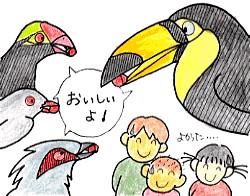 通常は気が強いオスですが、島に上陸しない限りそばを通れば、必ず取りがさえずるような声であいさつしてくれます。島のいちばん高いところに登れば、遠く離れたところにある私が出入りする類人猿舎の入口が見えますが、そこを通 る度ごとにもあいさつの呼びかけをしてくれます。