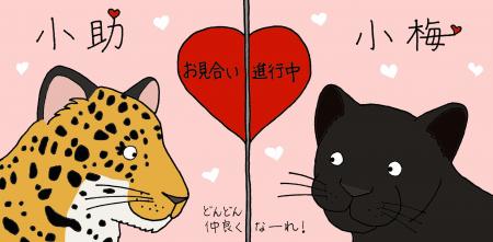 去年の4月に来園したジャガーの小梅が10月25日で2歳になりました!毎日たくさん遊んで元気いっぱいの小梅ですが、もともとはオスの卯月小助くんのお嫁さん候補として来園しています。今回は2頭のお見合いの様子についてお話したいと思います。