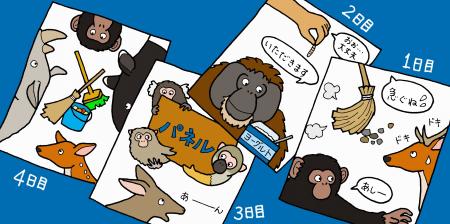 2日目の小型サル舎では、餌に与えるミルワームの作業があり、箱の中に無数のミルワームを見たときは少し寒気を感じました。しかし、慣れとは怖いもので、案外楽に触れることができよかったと思いました。オランウータン舎ではジュン君にヨーグルトとミルクをあげました。ジュン君は、とてもお利口で檻を開けるとちゃんと自分から入り、ヨーグルトやミルクも初対面の人の手から受け取ってくれました。チンパンジーは、近づくだけでも威嚇したり、唾を吐いたりするので、人に対してこれだけ態度が違うことに驚きました。同じ類人猿でもこの違いがあるのはなぜだろうと疑問に思いました。
