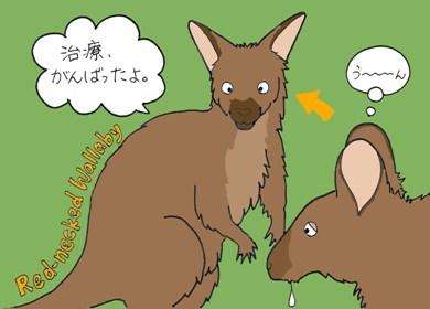 その後一月ほど治療を続けました。その間に保定する方もだいぶ慣れてきました。患部の状態も良いようなので、治療は中止とすることにしました。当園では今まであまりカンガルー病は発生しなかったのですが、これからも餌の採食の様子、顔の腫れ、よだれなどに注意をより一層払って行きたいと思います。