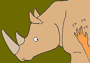 サイは体重が2tにもなり、陸上で生活している動物の中ではゾウの次に大きいこと、寿命は約50年ほど、フンはサインポストを兼ね一か所にすること、サイの角は人で言うと皮膚や髪の毛と同じ性質をしていることなど珍しい生態に関する話も紹介されました。