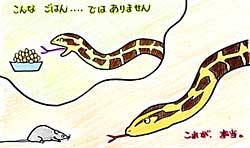 また、この実習を通して動物園で働いている人がどのような仕事をしているのか、どうやって経営しているのか、ということが、ほんの少しですが知ることができました。実習の初日が閉園日だったのですが、その時にニシキヘビのえさやりを目の当たりにしました。ニシキヘビの部屋で所狭しと逃げ回るねずみを狙いすましたように捕まえるヘビの姿は、今まではテレビでしか見たことがなく、見入ってしまいました。その光景はとてもリアルで、自然界の厳しさを物語っていました。自分は興味をもって見ることができたのですが、小さな子たちにこの光景をそのまま見せることができるかといえば、確かに難しいことだと思いました。日ごろ触れ合っているモルモットやウサギたちが、ヘビたちのえさになっているという事実は、子どもたちがもう少しいろいろなことがわかってからの方がいいかなと思いました。