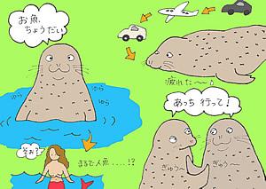 ゴマフアザラシのソウヤ(オス)とシズ(メス)です。6月4日に開港したばかりの静岡空港を利用して初めて来た動物ということで、TVのニュースや新聞でご覧になった方もいらっしゃると思います。