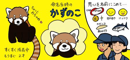 最初に申し上げたとおり名前は一生ものです。選ばれた後、『かずのこ』という名前が本当にしっくりくるのかヒヤヒヤものでした。しかし名前が決まって1年以上が経ち、すっかり馴染んでくれました。『かずのこ』はかわいすぎずかっこよすぎず、色々な小ネタをばらまいてくれる、ちょっとおちゃめで親しみのあるレッサーパンダに成長しています。
