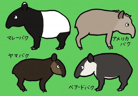 世界には4種類のバクがいます。日本平動物園のバクはマレーバク。インドネシア、マレーシアなどの森林、熱帯雨林などに生息している、体重が一番重たい種になります(250~350kg)。また白黒のツートンカラー模様が特徴的ですよね。その他、中南米に生息しているアメリカバク、ベアードバク、ヤマバクがいます(ヤマバクは日本の動物園にはいません)。全て絶滅危惧種で、野生ではどの種も1000~2500頭しか生息していないといわれています。なぜ減ってしまっているのか?それは近年の森林開発が原因といわれています。森林開発?一言でいえば『森林破壊』です。毎週、世界で東京都と同じ位の面積の森林が失われ、森林減少が深刻化しています。地球の7割が海、残り3割が陸地、そして陸地のうちの3割が森林です。その残り少ない森林が毎年減っています!マレーバクの生息地であるインドネシアなども森林減少が深刻化しています。また地球温暖化も生息地の破壊に影響しています。全ての原因は、わたしたち「人間」です。ただ唯一止める事が出来るのも人間なのです。