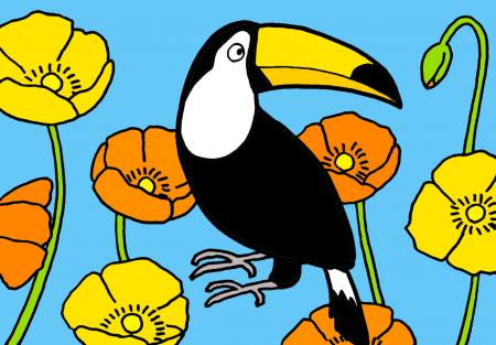 そんな可愛いヒナは立派なオニオオハシに成長したのでヒナとは呼べなくなり、ひっそりと愛称が決まりました。その名も“ポピー”です。鳥インフルエンザ対策のため閉鎖し、閑散としていた熱帯鳥類館を花が咲いたような雰囲気へ変え、多くの方に喜びを与えてくれたため、花の名前からとりました。また、オニオオハシの嘴のオレンジ色とお尻の赤い羽根からポピーが連想され、花言葉には「陽気で優しい」という意味もあり、オニオオハシの見た目の明るさと好奇心旺盛な性格からぴったりだと思い、“ポピー”としました。ぜひみなさん、「ポップで陽気な“ポピー”」と覚えてあげてください。