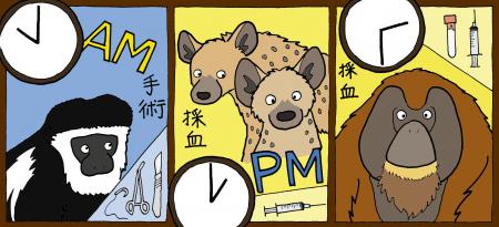 はじめまして!こんにちは。今回の病院だよりは今年度の4月に入庁し、日本平動物園にやってまいりました新米獣医が担当させていただきます。動物園が休みの休園日に、いったいスタッフは何をしているんでしょうか?休園日だからスタッフもお休み…?そんなことはございません。今回は休園日のとある1日を紹介いたします。