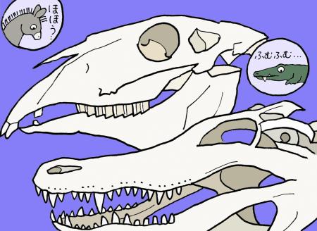 「解剖室」では、標本を並べ、動物園動物の死んでしまった後のことについて知っていただきました。動物園では、死んでしまった動物の解剖を行って死因を究明し、他の動物の飼育に活かすようにしています。餌は適量だったか、温度管理に問題はなかったか等、考えることはたくさんあります。そして解剖後、一部の動物は標本となり、私たちに動物の体のつくりについて学ばせてくれています。今回はキリンとマンドリルの皮標本、アムールトラ・ロバ・ワニの骨格標本、ヒヨコ・ワカサギ・アジの透明標本、ダチョウの偽卵を見たり触ったりしていただきました。標本はビジターセンターやハンズオンガイドでも見ることが出来ます。生きている動物から学ぶことも多いですが、それと同じくらい、またはそれ以上に死んでしまった動物から学ぶことも多くあります。