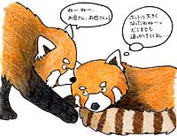 そして平成15年1月、年に一度のレッサーパンダの繁殖シーズンが到来しました。出産を期待して、ナラには新しい巣箱を2つ用意しました。ナラが好きな方を選べるようにしたのです。しかし、肝心の交尾がなかなかできません。フウフウは、ナラが気になって追いかけたりもするのですが、大好物のリンゴがあると、色気より食い気が先に立つようで、餌にかぶりついてしまいます。これじゃダメだ・・と悩んでいたところ、2月中旬、思いがけず交尾が見られたのです。よしっ!これで可愛い子供が、と思う一方で、まだまだ不安材料は山のようにありました。