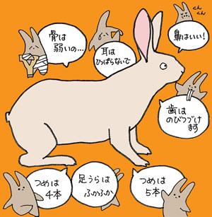 前の歯はみんなと違って伸び続けるんだ。なかには歯が曲がって伸びる子がいるんだけど、そうすると噛み合わせが悪くなって歯がずれて伸びるんだって。ずれるとご飯が食べにくくなっちゃうから獣医さんに切ってもらうんだ。うー怖いな。