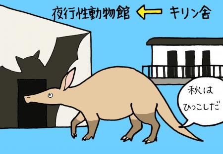 夜行性の屋内エリアで飼育されていることが多いツチブタが明るい時間、しかも外で土を掘っている姿はなんとも感慨深いものでした。皆さんも当園にお越しの際はぜひキリン舎のツチブタに会いにきてください…と言いたいところですが、実は先述した通り”暖かい時期限定”の展示になるのでこの記事が出ている頃には夜行性動物館での展示になっていると思います。ツチブタは本来暖かい地域に生息するため、日本の冬をキリン舎の暖房設備だけで乗り越えるのは難しいのです。来年のツチブタの引越は未定ですが、今年キリン舎での展示を見られなかった方はぜひ来年の当園からのお知らせをお持ちください。もちろん夜行性動物館のツチブタたちにも会いにきてくださいね。