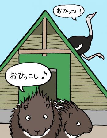 アフリカタテガミヤマアラシの「モップ♂」と「シューマイ♀」が、夜行性動物館から旧ダチョウ舎へとお引っ越しをしました。旧ダチョウ舎と書いたとおり、先住のダチョウ「クランキー♂」が2022年6月に旧アメリカバイソン舎に移ってから約一年半、念願かなってのお引っ越しです。でっきぶらし268号で書かれたクランキーのお引っ越しの時同様、違う動物種の獣舎への移動となったため、今回の引っ越しも一筋縄ではいかず・・・多くの職員の力を借りて『ヤマアラシ舎』を実現することができました。