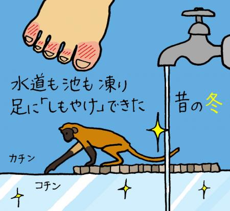 自分が動物園に配属されたのは20数年前。仕事を始めてから初めての冬はかなり寒く感じました。なぜ覚えているかというと、動物園に来てから小学生以来久しぶりに足にしもやけが出来たからです。びっくりしました。自分は基本的に作業中、長靴を履いて仕事をしているので、どうしても足が冷えてしまいます。厚い中敷きを入れてみましたが、底冷えするようで効果はありませんでした。しもやけが出来てしまった要因は色々ありますが、一つに立地があります。動物園は少し標高が高い場所にあり、自分が住んでいる所より気温が低かったのです。さらに近くに高速道路があるためそこが寒気の防波堤になり余計冷えました。当時いた先輩飼育員には「高架下のトンネルをくぐる前と後だと温度が2度違うよ」と言われました。そんな寒い動物園で働いていたある日、一緒に仕事をしていた職員に帰り際に言われました。「今日の夜はだいぶ冷えそうだから獣舎にある水道の蛇口少しひねって水をチョロチョロ出してから帰ってね。水が出なくなっちゃうから」と。「えっ!!出なくなるの」と思い聞いてみると今日の寒さだと水道が凍ってしまい、水が出なくなるとの事。初めの内は気にしていましたが慣れてしまうとだめですね。ちょくちょく出し忘れて帰ってしまう事がありました。そうなると次の日は最悪です。蛇口をひねっても当然、水は出ません。凍った水道が解けるよう少し離れた調理場でお湯を沸かし水道管に掛けます。1回で出るようになってくれれば良いのですが、なかなか溶けなくて何往復もした事もあります。また別の日には水を出して帰ったのですが、その時はあまりにも寒すぎて水が氷柱状になって凍ってしまいました。今では考えられないですね。他にもクモザル島の周りの池の水が凍ってしまい、逃げ出さないよう氷を割りに行った事。メガドームの桟橋の鳥の糞が取れやすいようスプリンクラーで水をまいたら東屋が凍ってしまい氷の城が出来上がってしまった事。などなど、昔は色々ありましたね。最近では水道が凍ることはほとんどなく、池に氷がはることはなくなりました。仕事をする上では楽になりましたが環境的にはどうなのかと思ってしまいます。また寒い冬がきて欲しいような、欲しくないようなと思う今日この頃です。