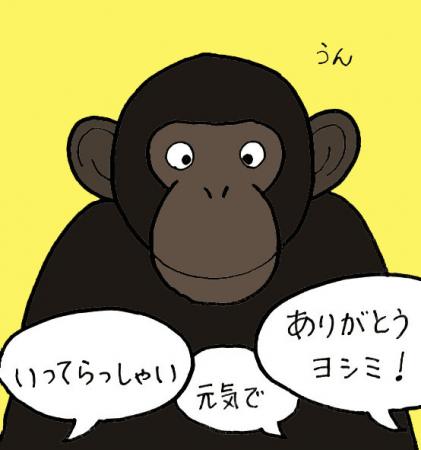 飼育員が教えたトレーニングが数回でできるようになるほど頭が良く、(頭が良すぎてピーチをカムイにけしかけて騒ぎを起こしたりもしていましたが…)子どもが好きで自身の仔ではないげんきにも優しく、時に厳しく相手をしてあげていました。日本平動物園では雌チンパンジーのリーダーとして頑張っていたヨシミ。新天地でも群れの仲間と仲良く元気に暮らしてね!