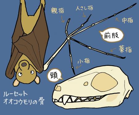 後日、頭骨、上腕骨を残し、食塩とミョウバンのなめし液を使用し2体目を作りました。骨を残す選択により、そこに付着する筋肉等を丁寧に取り除く作業が増えました。頭蓋内の脳は細くて長い注射針を用いて掻き出し、上腕骨の筋肉はピンセットやハサミを用いて取り除きました。昼から始めた作業は1体目の何倍もの時間がかかり、終わったのは辺りが暗くなってからでした。そんなこんなで、苦労して製作した2体目は満足のいくできあがりで、無事に夜行性動物館のガイドにデビューすることができました。私も小中学生を対象とした出張動物園ガイドの際に、このコウモリの剥製を見せています。意外なことに、一緒に並べたホッキョクグマの毛皮よりもコウモリに興味を持つ子が多く、その度に頑張って作った甲斐があったなと思います。3体目は次回のガイドに向けて骨格標本にする予定です。
