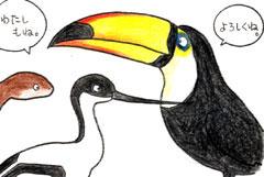 [一覧へ戻る] « 163号の1ページへ|163号の3ページへ » 163号(2005年01月)2ページ 新たに仲間入りした動物達 熱帯鳥類館に2月にソリハシセイタカシギという面白いくちばしをした鳥が 2羽仲間入りしました。 くちばしが先端に行くほど湾 曲し上を向いています。一見どのようにして餌を食べるのか不思議です。 来年は 是非とも可愛いヒナをみたいですね。 同じく鳥類館に、オニオオハシという綺麗なくちばしした熱帯地方原産の鳥が海外から3月下旬に入りす。 爬虫類館にはコロンビアレインボーボアという体長1メートルほどの茶色い色をしたヘビが仲間入りしました。とても気の優しい爬虫類です。 « 163号の1ページへ|163号の3ページへ » [一覧へ戻る]