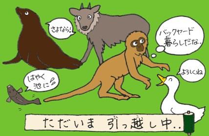 新しい施設の工事中、いろいろな動物たちが別の場所に引っ越しをしなくてはなりません。