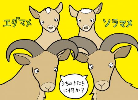 4月6日にバーバリシープに双子が誕生しました。3年前に大島公園動物園からツワブキ、イソギク、アシタバが来園して以来、ボスと4頭で暮らしていましたが、待望の赤ちゃん誕生です!父親はボス、母親はイソギクで、性別は2頭ともオスでした。「ソラマメ」、「エダマメ」と命名し、頭の上にある白い模様が横長なのがソラマメ、縦長なのがエダマメです。イソギクは昨年も出産を経験していましたが、残念ながら死産で、今回が初めての子育てでした。
