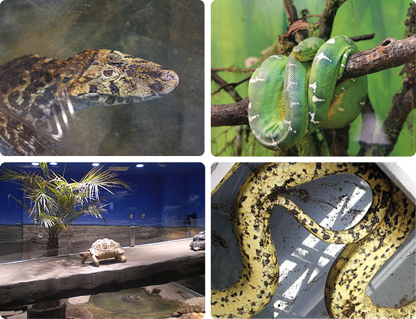 「は虫類館」は、生息環境別に4つのゾーンに分け、いろいろな角度からじっくりと観察できる。それぞれの個体の「形」や「色」、「大きさ」等を比較しながら、様々な環境に適応し、静かにじっと生きる爬虫類や両生類たちの「神秘」を感じることができる。